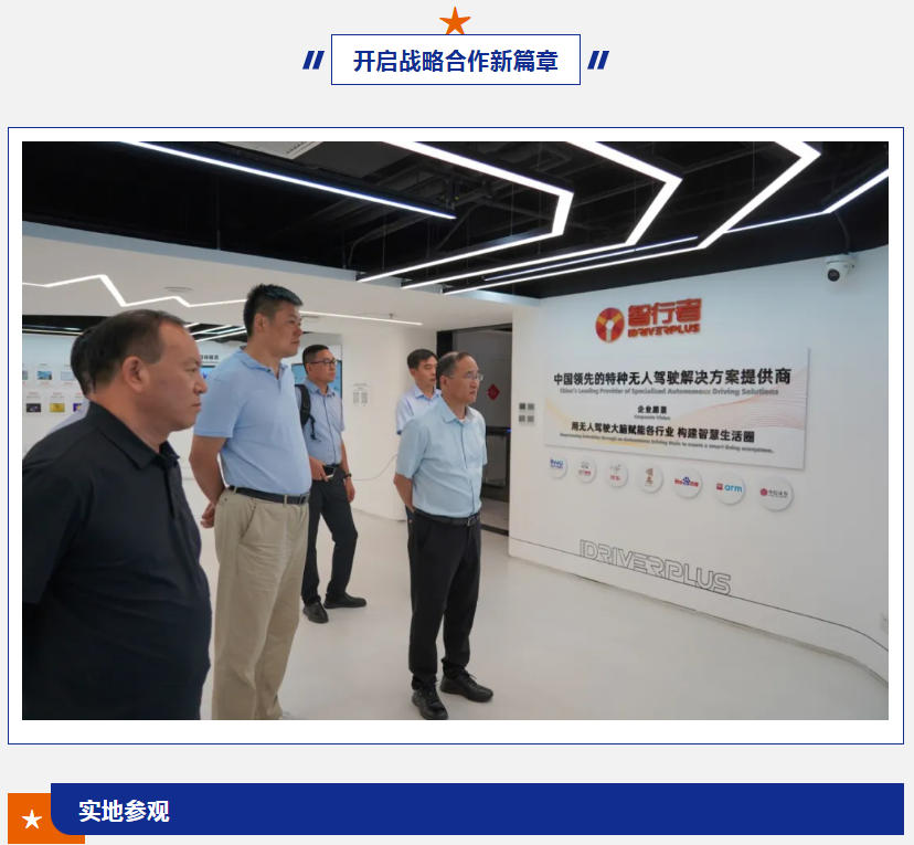 森源集团领导一行实地参观了北京智行者展厅,全面了解了企业的发展历程和技术成果,详细观看了无人驾驶清洁车的运行演示,并现场体验无人驾驶观光车,直观感受了北京智行者在无人驾驶技术应用方面的领先成果。